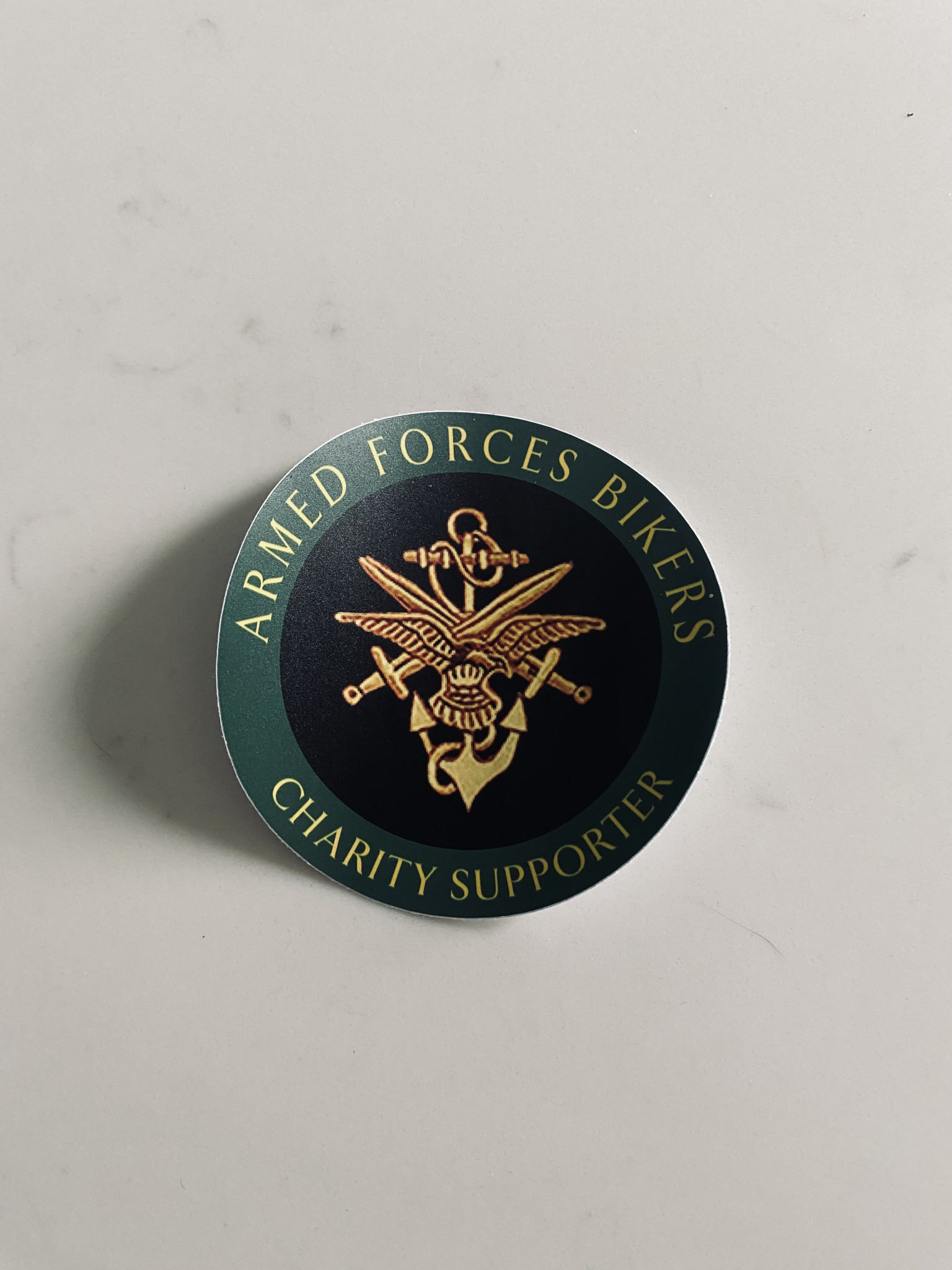 4-inch round AFB Charity Supporter sticker. Front Adhesive, suitable for windows.